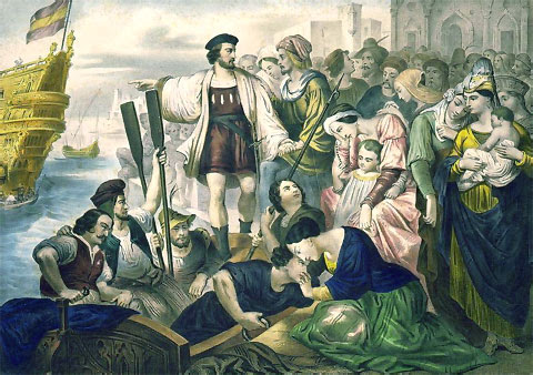 Primer desembarco de Cristóbal Colón en América (Dióscoro Teófilo Puebla, c. 1862)